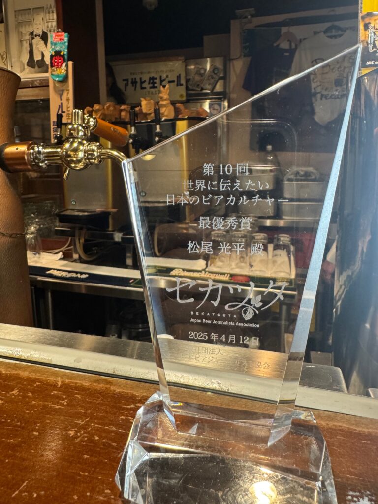 写真左上奥に映っているのが「松尾光平さん」です。「灘コロンビア」の故 新井徳司が注ぐ生ビールは、泡がきめ細かく「楊枝が立つ」と絶賛され、その注ぎ方が、弟子の松尾さんに継承されているといわれています。SORACHIは、カーボネーションが丁度よく、ホップの香りがふんだんに、豊かに香るビールで、感動の1杯でした。
