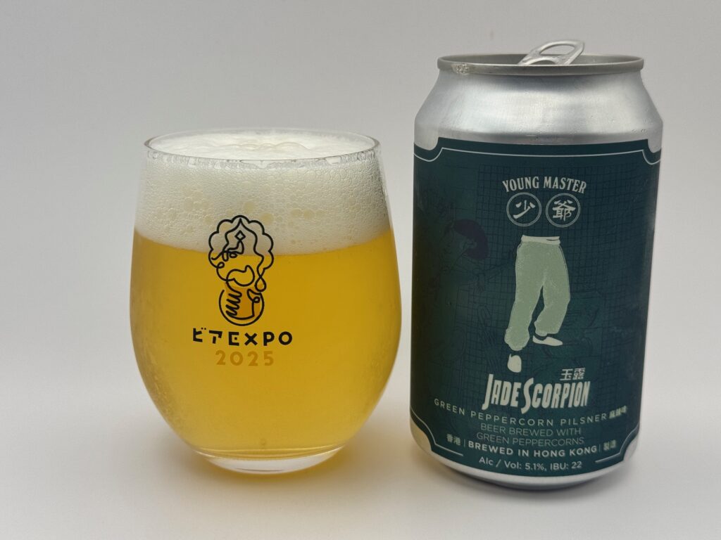 ビアフェス2025in横浜で初めて知った香港のヤングマスターのジェイドスコーピオン。ハーブ及びスパイスビールのスタイルとして出品されていました。ブルワリーはビールを送るのみだったので、クラフトビール協会でサービングしてお客様にふるまいました。ただし、このビールは量が少なくIBCで金賞を受賞していたため人気があり、開始1時間程度で売り切れ続出でした。